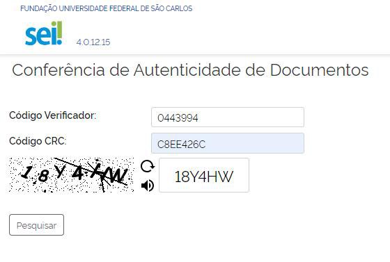 A autenticidade de qualquer documento interno no SEI pode ser verificada no seu rodapé depois de assinado digitalmente, inclusive por pessoas externas que não têm acesso ao SEI-UFSCar.