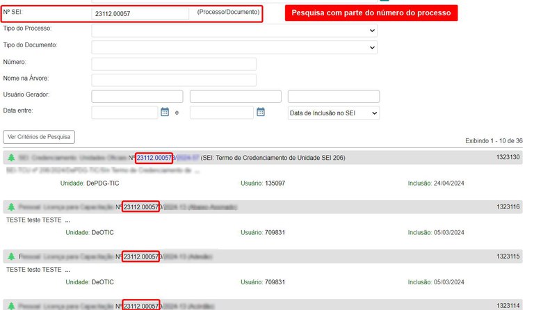 Por exemplo, se você inserir o número de um processo SEI, isto o levará diretamente ao processo.