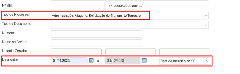 - selecione se o período se refere à “Data de Inclusão no SEI” ou “Data do Processo/Documento”;