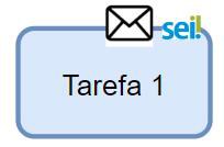 | A forma com um ícone de envelope, seguido pelo ícone do SEI, no canto superior direito da atividade indica que a ação deve ser realizada por meio do envio de e-mail via SEI | |